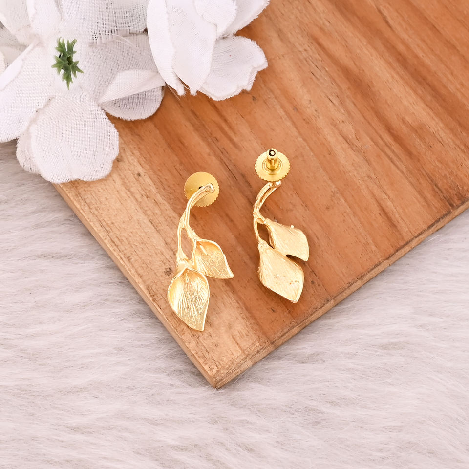 Wholesale Designer Brass Earrings Crafted From Gold Plating Custom Earrings Fancy Long Stud Leaf Earrings Perfect For Parties