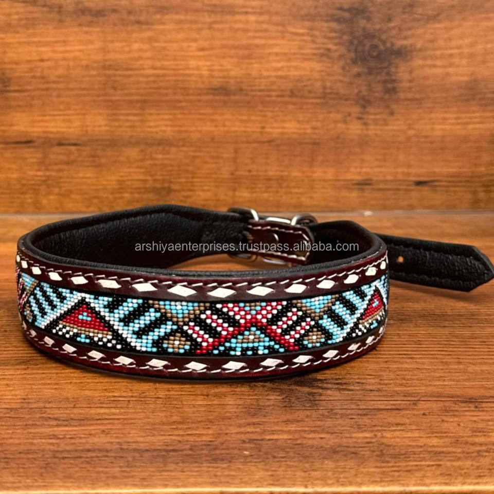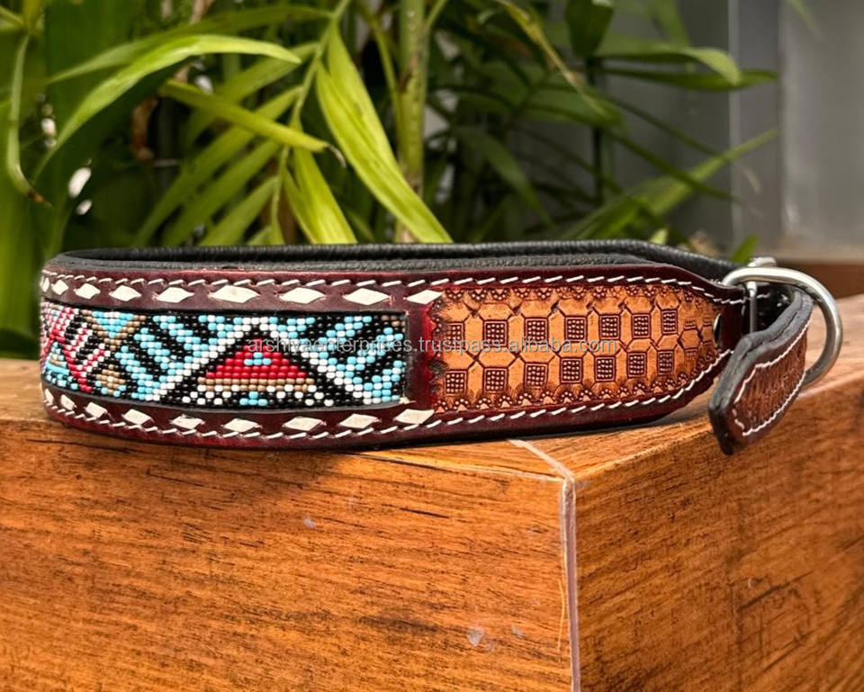 Wholesale Designer Pet Accessories Hand Tooled Leather Dog Collar Durable High Quality Cowhide Leather Alloy Hardware Pet Collar
