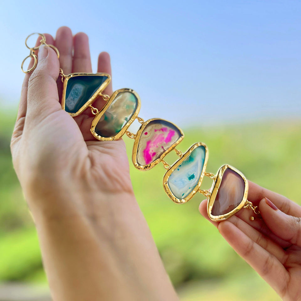 Wholesale Designer Vintage Brass Bracelet With Bright Colors Gold Plated Agate Choker for Women Party Pearl Diamond Main Stones