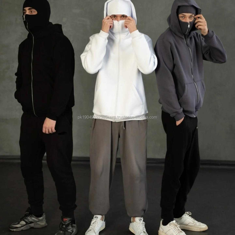 Wholesale Designer White Fall Winter Zip-up Hoodie Custom Logo Fashion Balaclava Front Logo Hooded Crop Length Solid Pattern