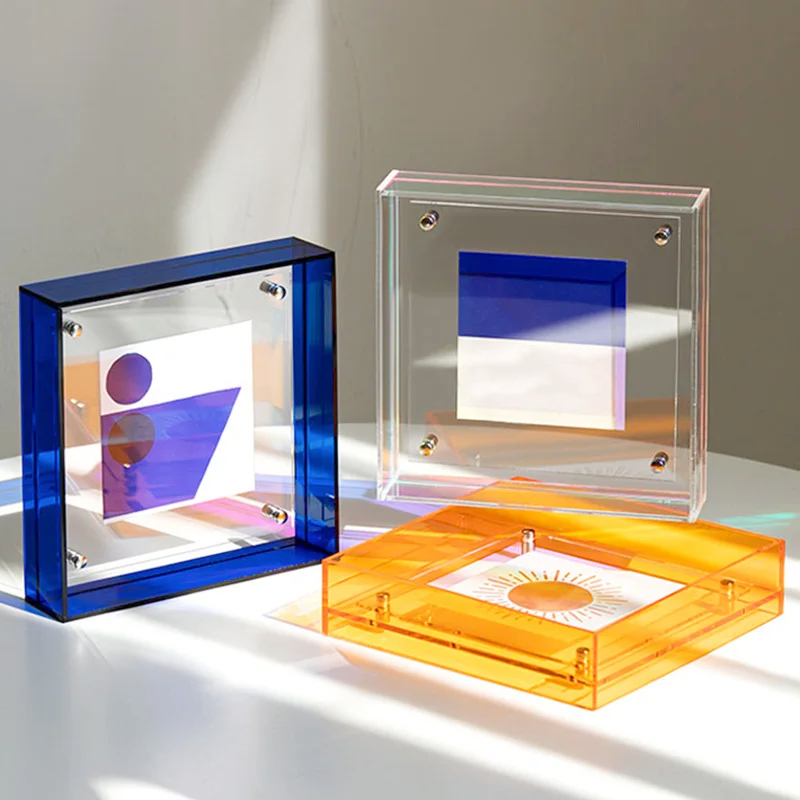 Wholesale Desktop Block Photo Frame 2x3 4x6 5x7 6x8 Custom Colorful Edge Wall Mount Acrylic Picture Frame