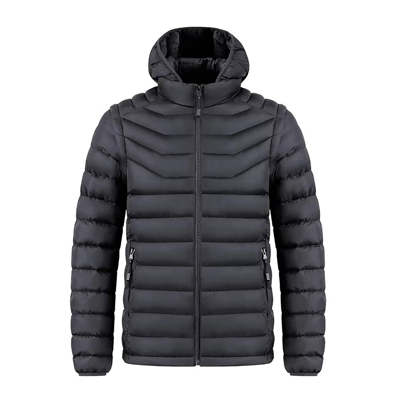 Wholesale Detachable Sleeve Men's Custom Puffer Jacket Fleece Lining Casual Winter Wear with Zipper ClosureDDP Shipping