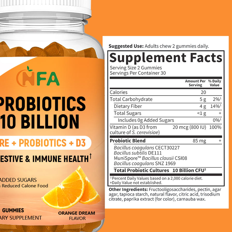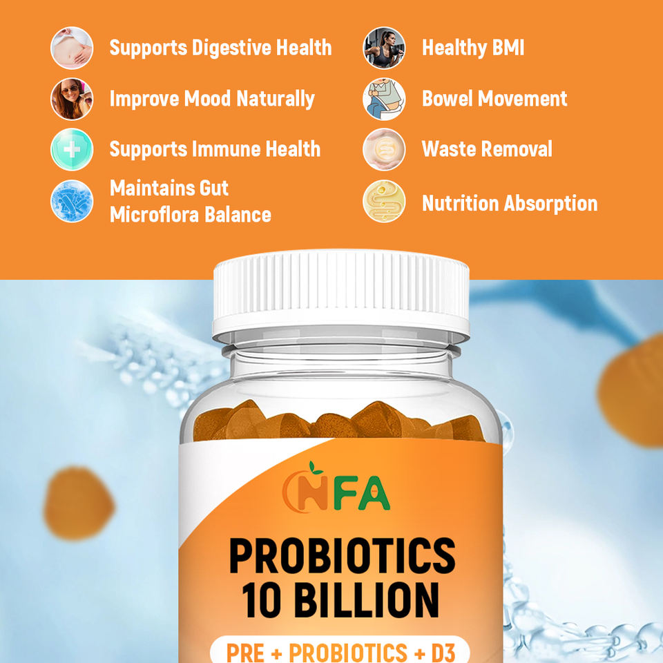Wholesale Dietary Supplement Probiotic 10 Billion Gummies with Preprobiotic D3 Digestive Immune Health Candy Gummies