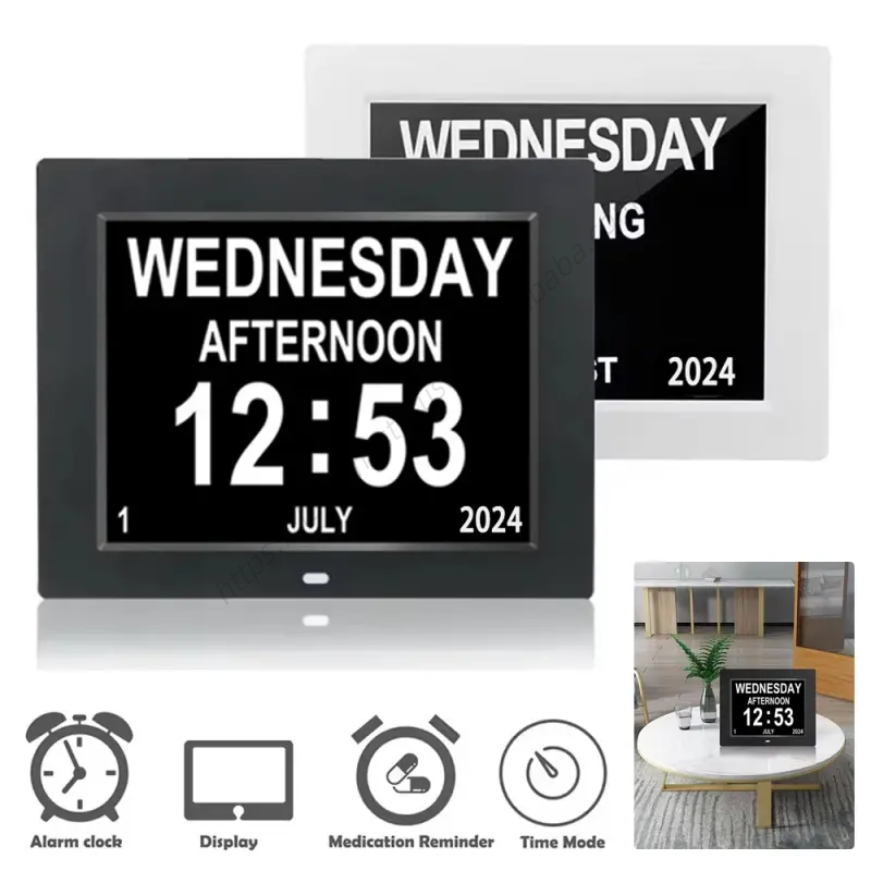 Wholesale Digital Alarms Calendar Clock with Multi-languages Medicine Time Reminder for Elder Home Desk Wall Decoration