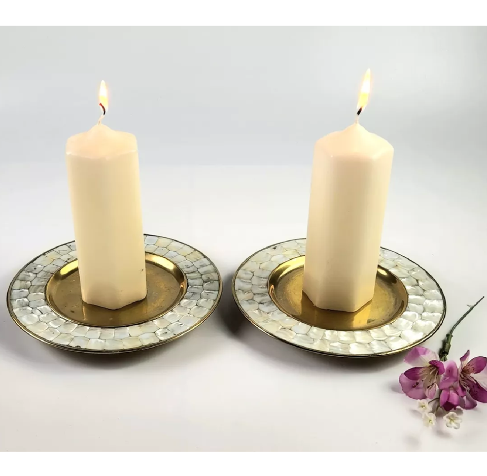 Wholesale Direct Factory Price Brass Pair Decorative Candle Sticks Mother of Pearl Wedding Centerpieces Decor