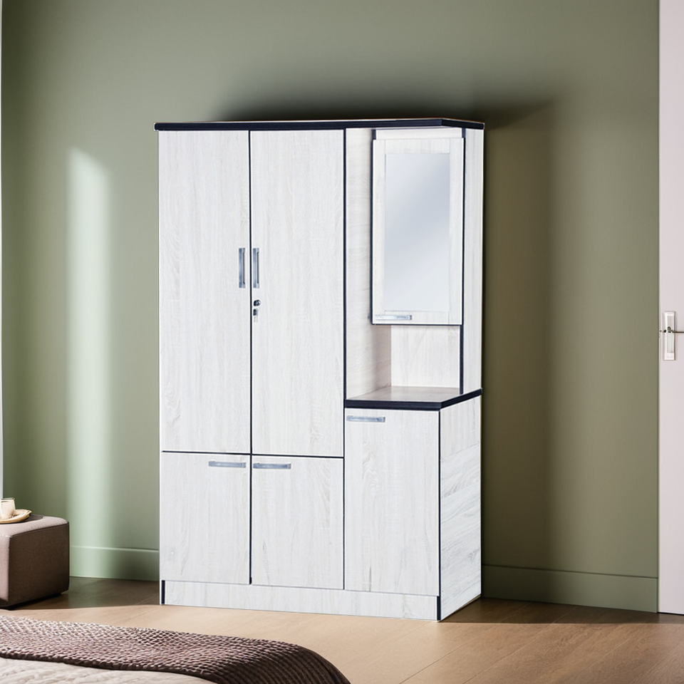 Direct Wholesale Lightweight Design White/Dark Oak Plywood Wardrobe with Makeup Side Mirror Shelf Hanger for Bedroom & Villa Use
