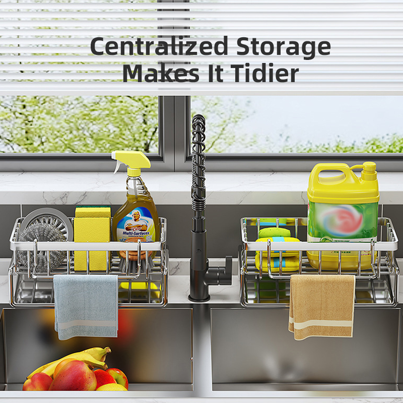 Wholesale Dish Towel Rack Kitchen Shelf Household Drain Basket Multifunctional Sponge Detergent Storage Kitchen Sink Rack Holder