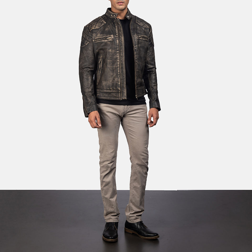 Wholesale Distressed Brown Leather Jacket for Men High Quality New Style with Hooded Collar Fur Decoration jacket for men