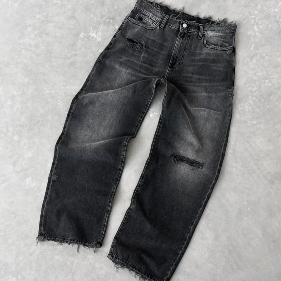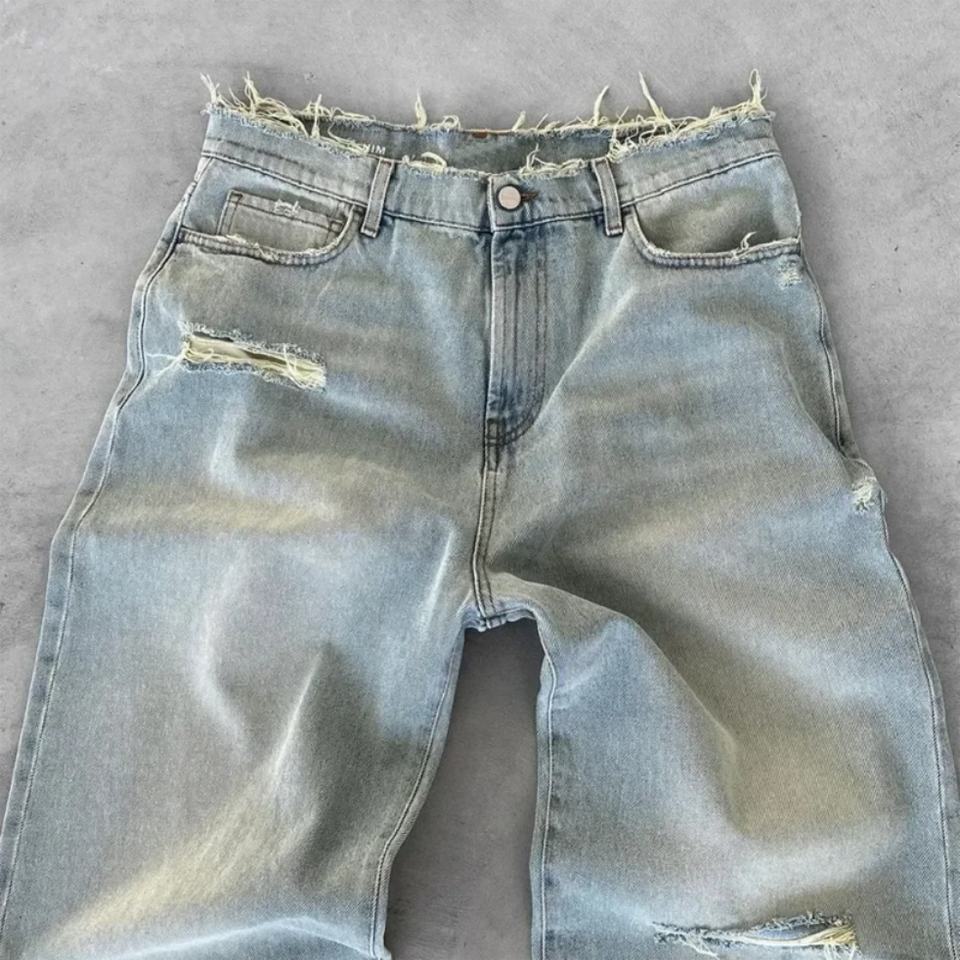 Wholesale Distressed Men's Baggy Jeans Custom Ripped Men Regular Fit Faded Washed High Waist Pants Casual Stock Jeans for Men