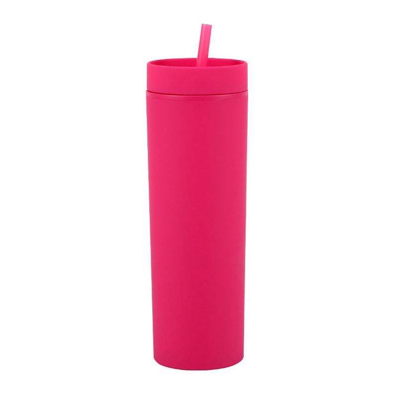 Wholesale Double Wall Plastic Cups Large Capacity Straight Tube Water Bottle With Straw Cold Drinks Portable
