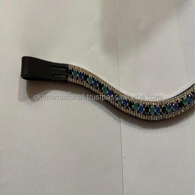 Wholesale Dressage Equestrian Horse 100% Genuine Leather Brow Bands with 3 Row Crystals Rhinestone All Sizes & Colors Available