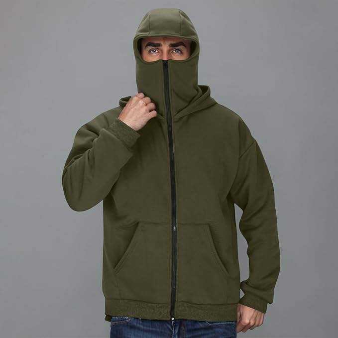Wholesale Drop Shoulder Vintage Blank Hooded Sweater Custom Men Acid Wash Ninja Full Face Zip up Hoodie With Eye Holes