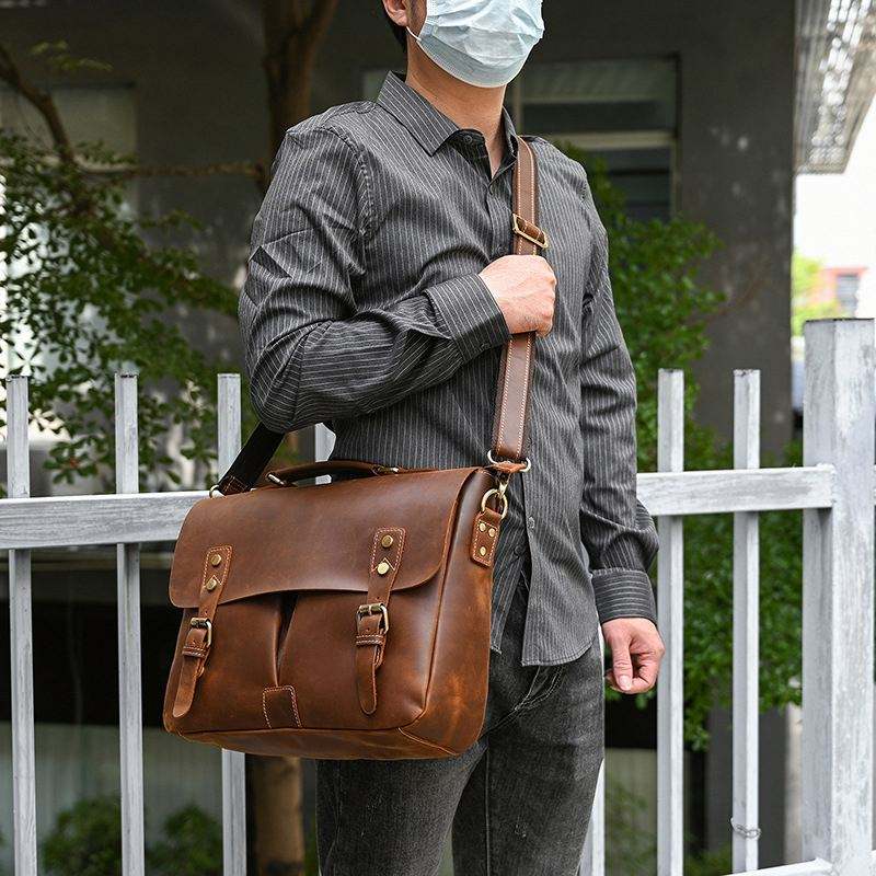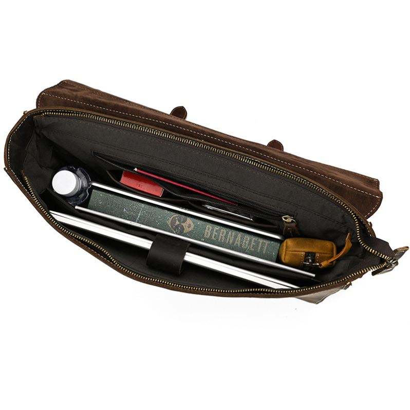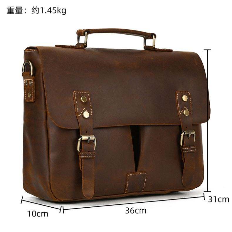 Wholesale Dropshipping Leathercraft Unisex Full Crazy Horse Leather 15.6 Inch Laptop Briefcase Zipper Closure Soft Bag