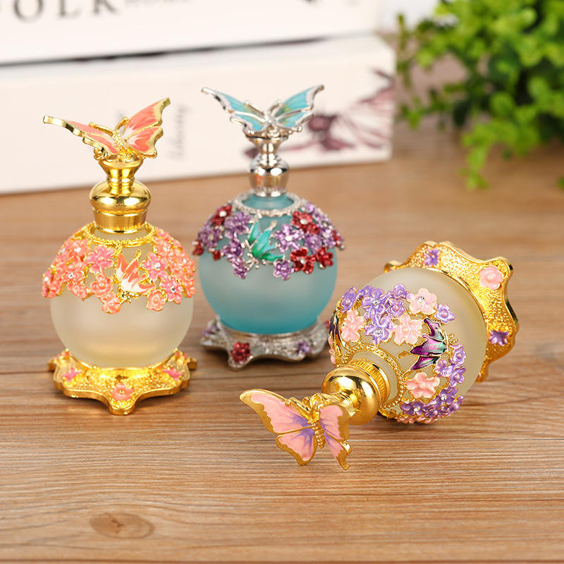 Wholesale Dubai Middle East 25ML Butterfly perfume Essential Oil Ball Bottle Metal Cosmetics essence Bottle