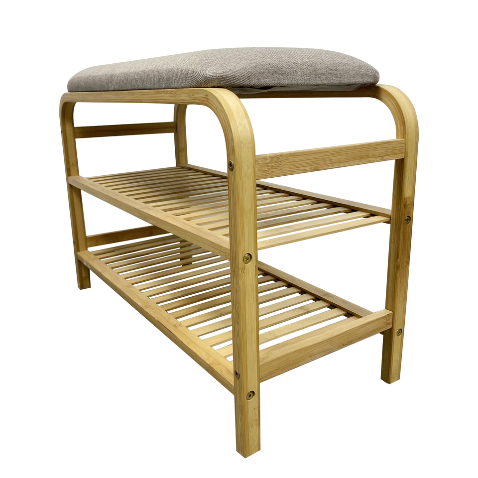 Wholesale Durable Bamboo Shoe Rack Bench with 2 Tiers of Shelves Display Storage Organizer for Bedroom, Entryway, Hallway