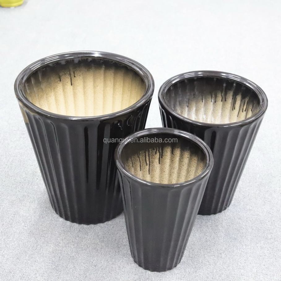 Wholesale Durable Hand Carved Simple Medium Ceramic Tabletop Flowerpot Drainage Hole Eco-Friendly Lightweight 3L Flowers