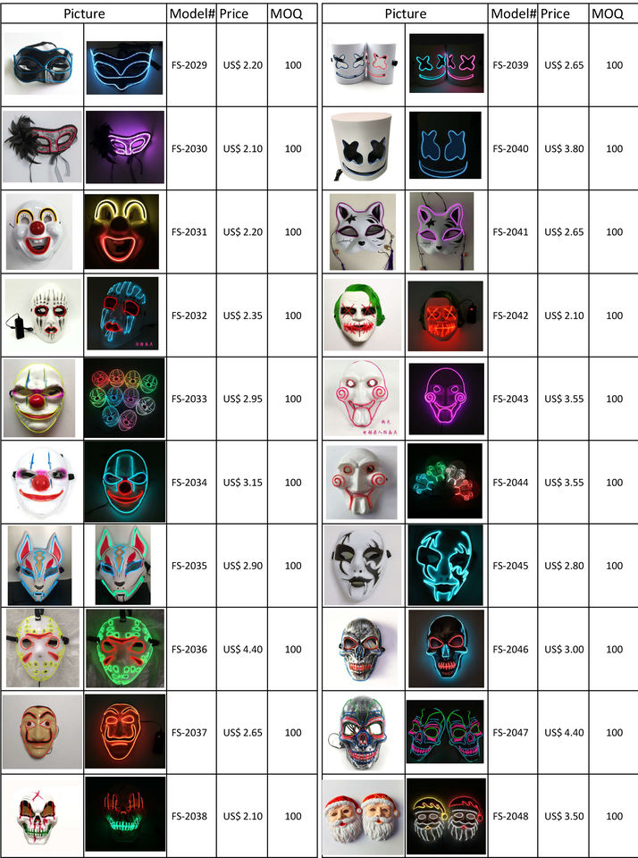 Wholesale EL Wire Lighting Skull Design Masks Neon Glowing Flashing Party Novelties for Halloween Scary Parties