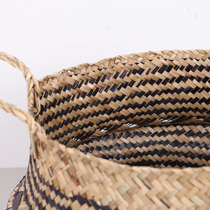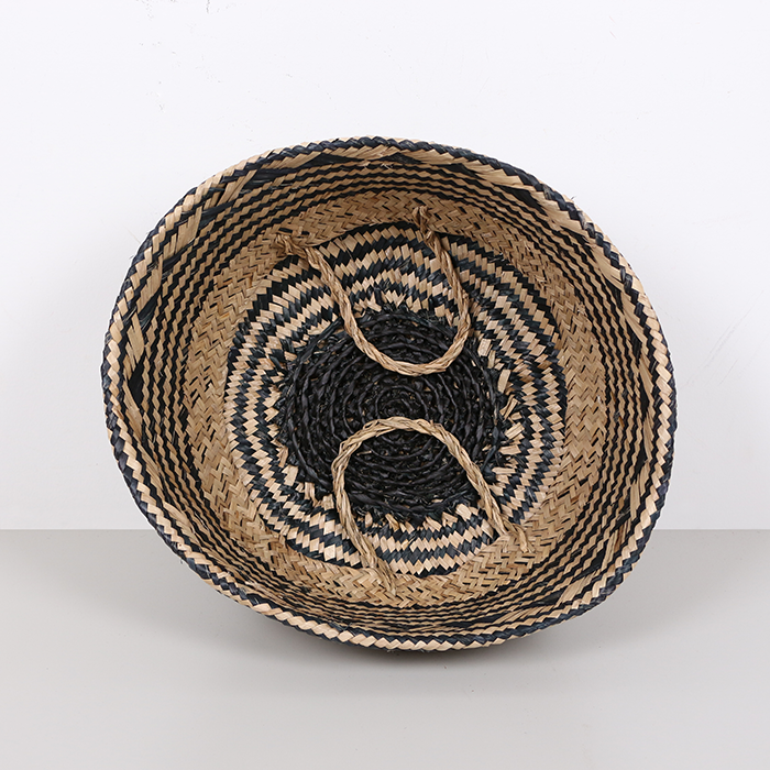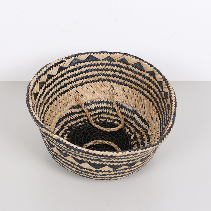 Wholesale Eco Friendly Black Zigzag Pattern Seagrass Belly Basket Storage Baskets Wicker Baskets Home Organizer Plant Pot Decor