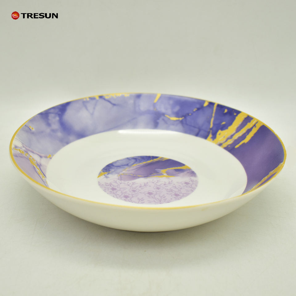 Wholesale Eco-Friendly Ceramic Porcelain Plate Dinner Sets Personalised Design with Purple and Yellow China Dinnerware