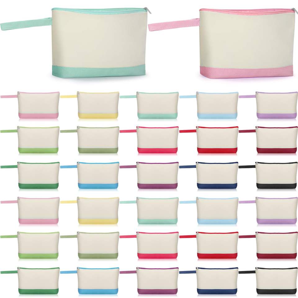 Wholesale Eco-Friendly Custom Cotton Canvas Zipper Pouches Soft Handle Foldable Large Capacity Reusable Makeup Cosmetic Bags
