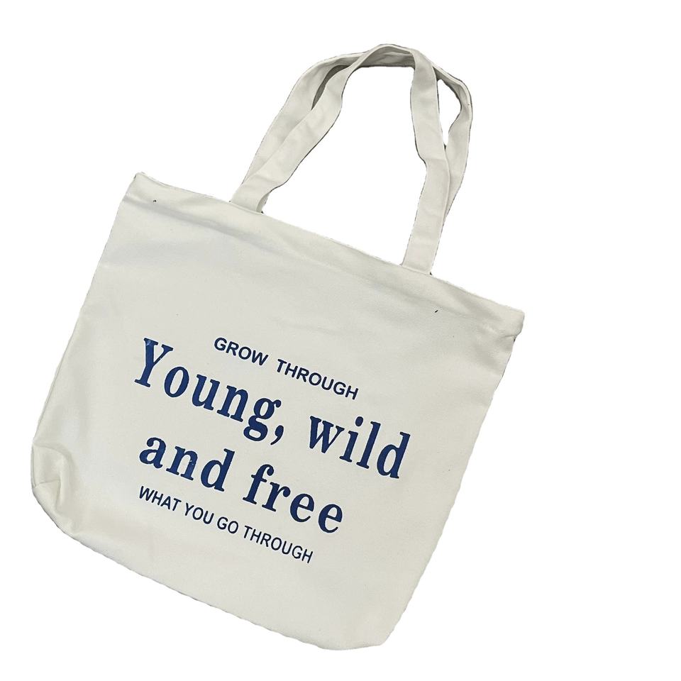 Wholesale Eco-Friendly Custom Logo Cotton Canvas Beach Tote Bags Rope Handle Two Straps String Closure Casual Print Decoration