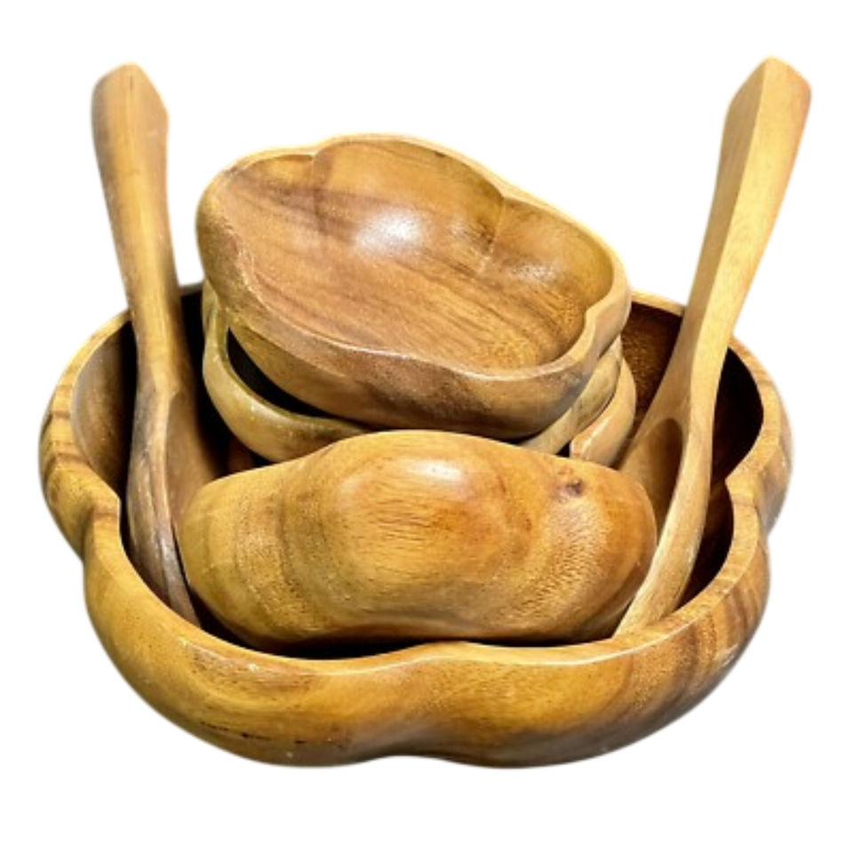 Wholesale Eco-Friendly Handmade Acacia Wooden Salad Bowl Set With Serving Utensils Large Capacity Natural Wood Fruit Mixing Bowl