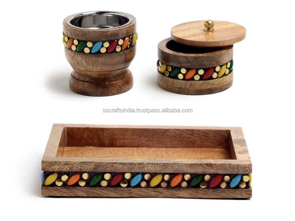 Wholesale Eco-Friendly Handmade Brass Burner Wooden Bass Bone Inlay Mosaic Beaded Gold Plated Coriander Tray Incense Bakhoor