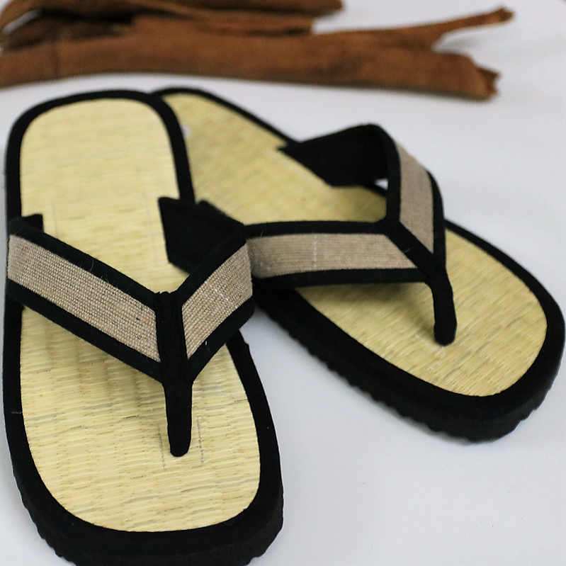 Wholesale Eco-Friendly Handmade Vietnam Flip Flops Breathable Canvas Upper Material Warm Winter Slippers in Seagrass Cinnamon