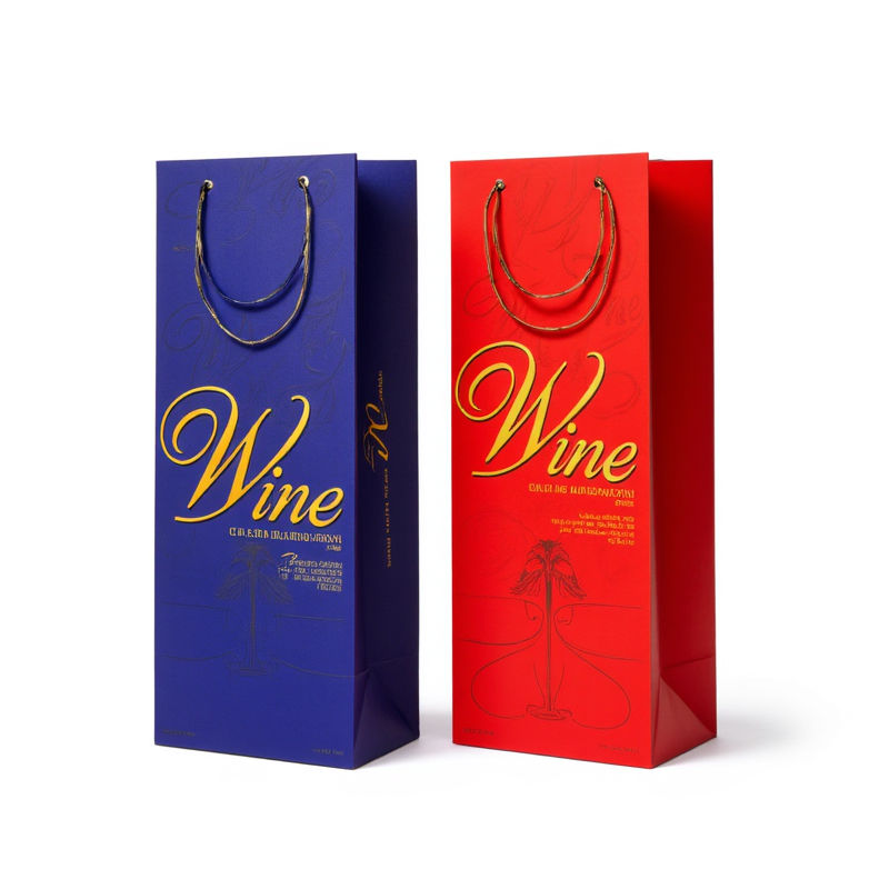 Wholesale Eco-Friendly Heavy-Duty Luxury Single Wine Bottle Kraft Paper Bags with Custom Logo Printed Handles for Wine Packaging