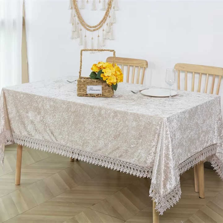 Lace Trim Rectangular Velvet Tablecloth For Wedding