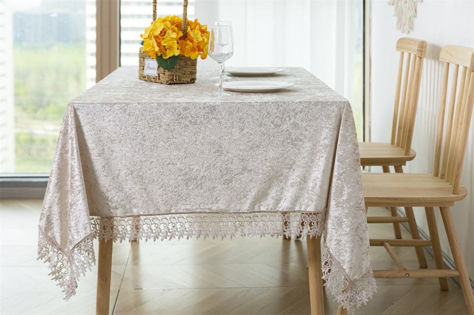 Product Name:Lace Trim Rectangular Velvet Tablecloth For Wedding