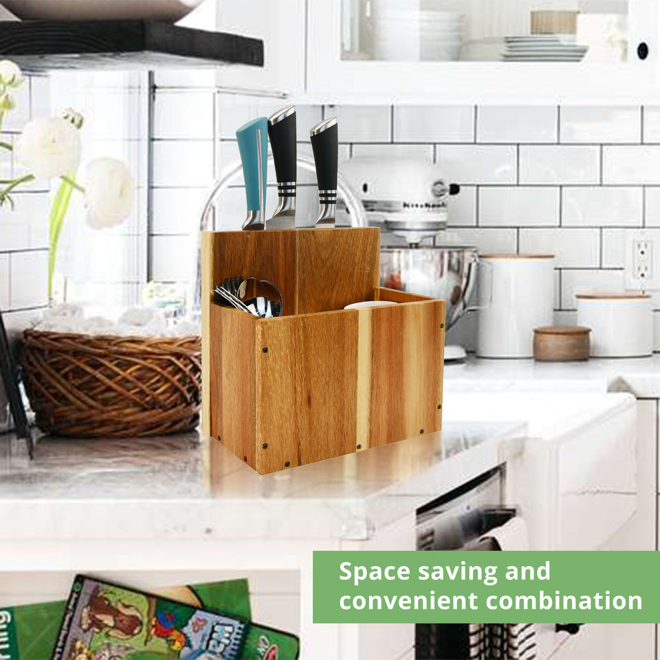 Knife Block Teak Wood Kitchen Utensils Holder Magnet Knife Stand