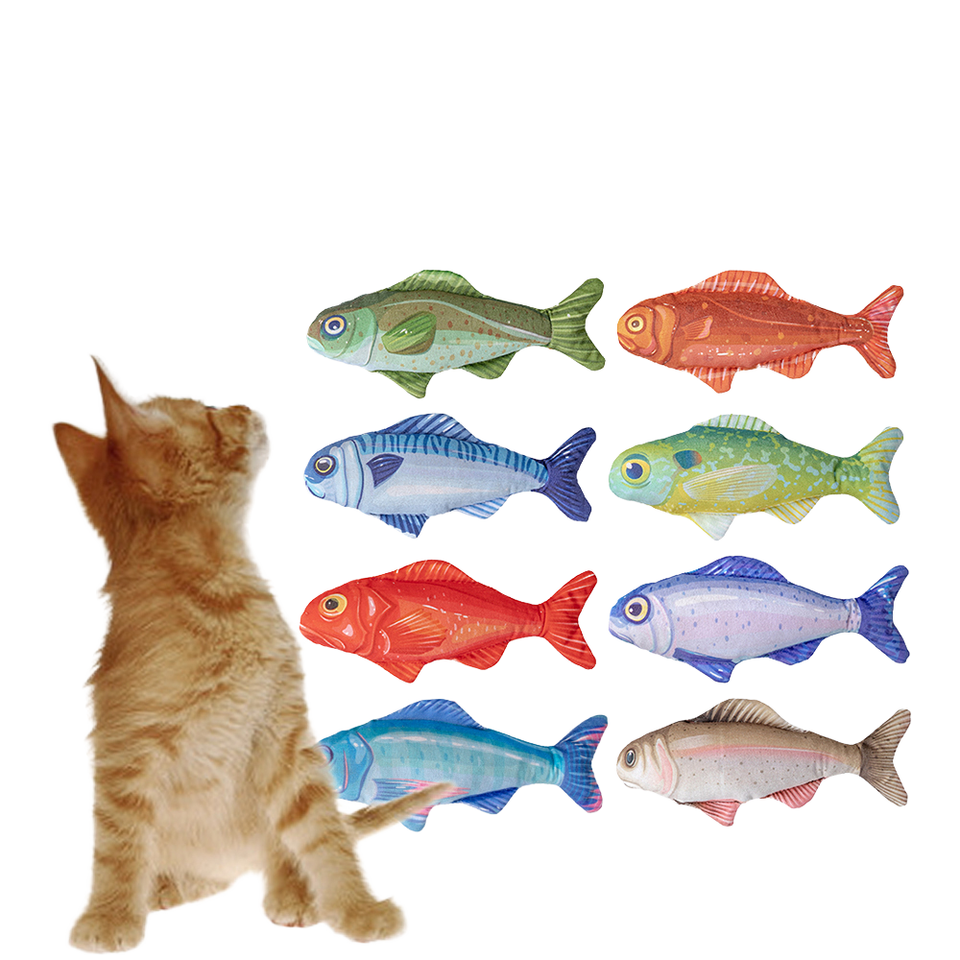 Wholesale Eco-Friendly Modern Plush Fish Design Catnip Cat Cuddly Pet Interactive & Movement Toy with Cartoon Pattern