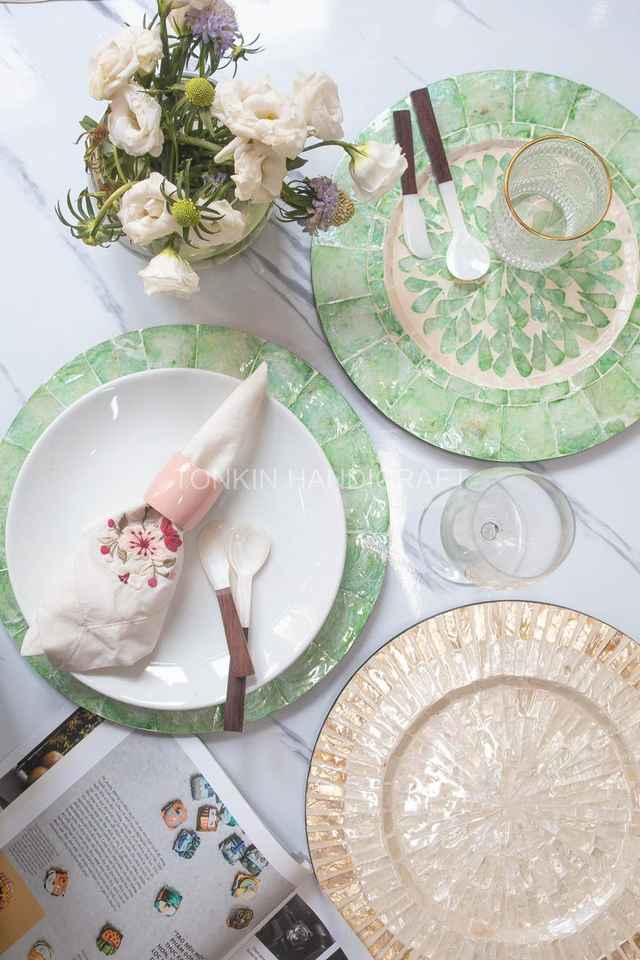 Wholesale Eco-Friendly Placemats Table Mat Slate Placemat Mother of Pearl Shell Placemats with Beads