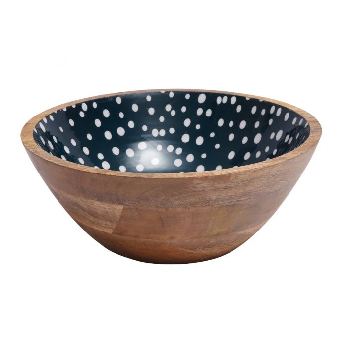 Wholesale Eco-Friendly Polished Wood Salad Server Bowl Enamel Printed Flower Design- Custom Sizes From India