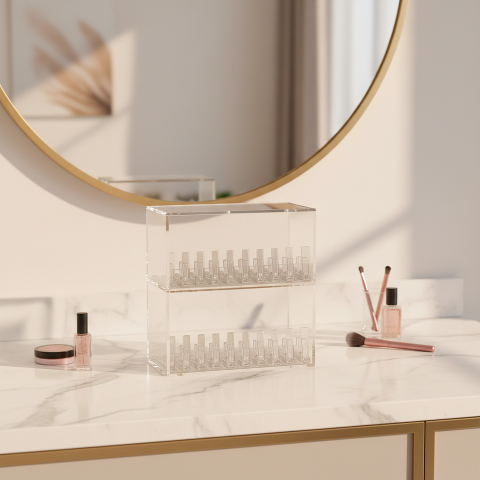 Wholesale Eco-Friendly Recyclable Acrylic Booster Box for Light Weight Polished Display for Lipstick Brush Storage