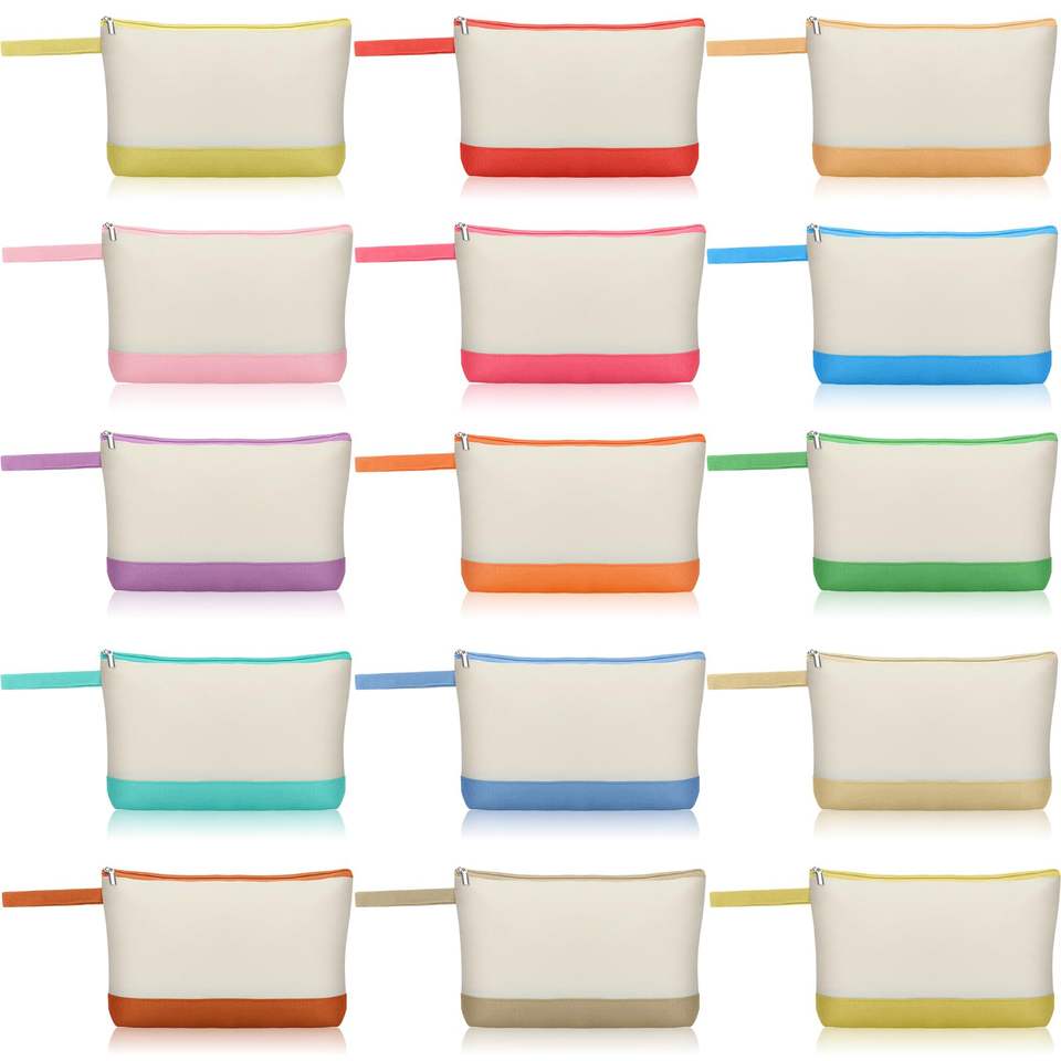Wholesale Eco Friendly Reusable Custom Cotton Canvas Zipper Pouches Large Capacity Plain Makeup Cosmetic Bags Handled Handle