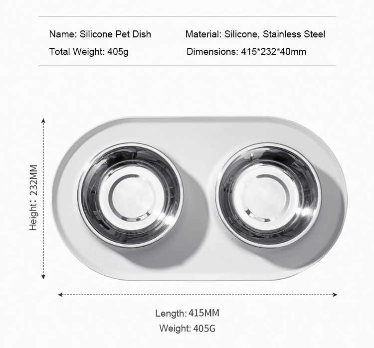 Wholesale Eco-Friendly Square Pet Food Water Double Bowl Dog Bowl Mat with 2 Stainless Steel Dog Feeding Bowls