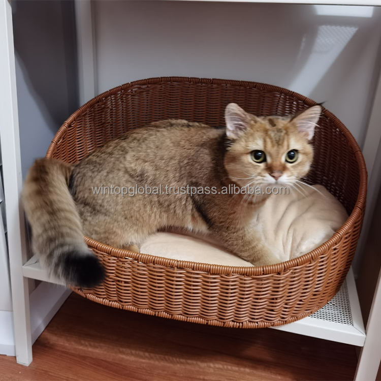 Wholesale Eco Friendly Warm Comfortable Traditional Chinese Handicraft Rattan Linen Raised Hanging Cat Pet Beds