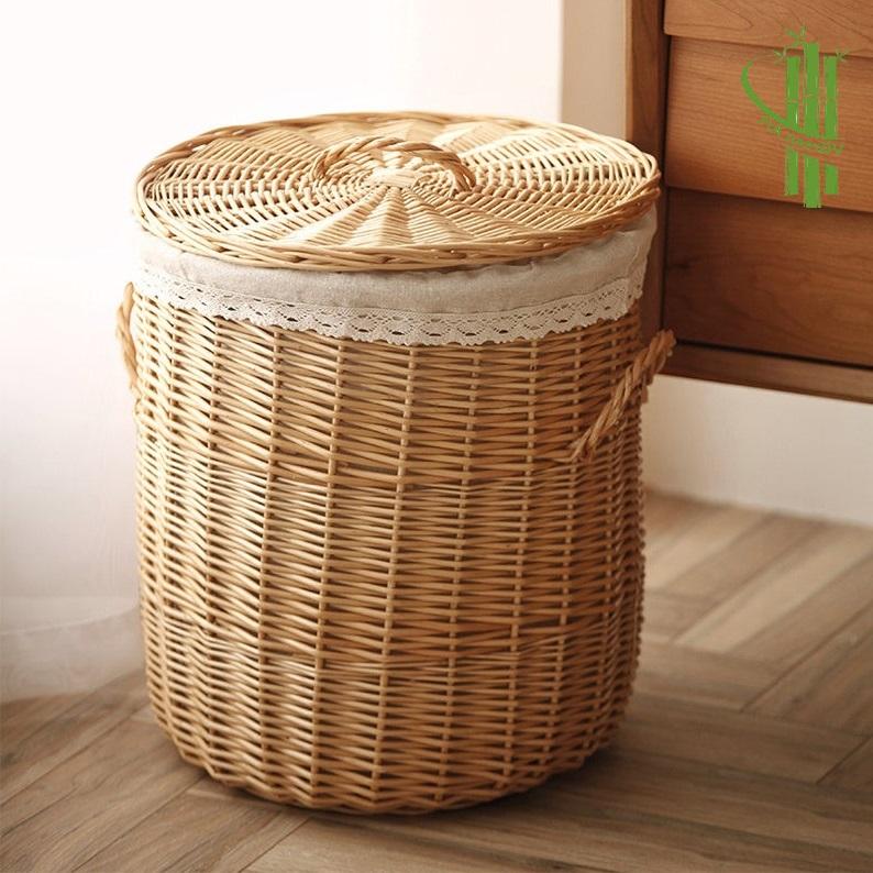 Wholesale Eco-Handmade Round Folding Rattan Storage Basket New Design Cotton Rope Clothing Laundry Toys Organizers Kitchen Use
