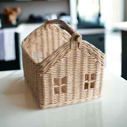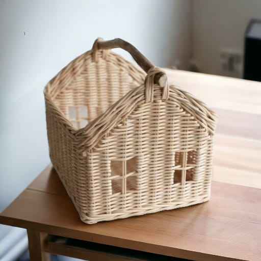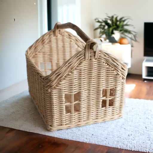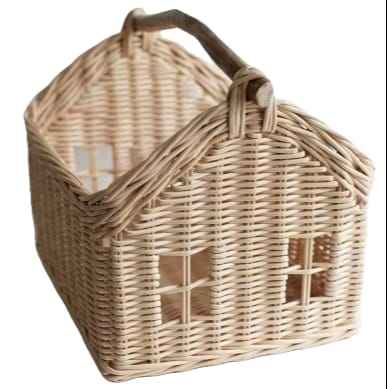 Wholesale Eco-friendly Bamboo Rattan Toys Wicker Basket for Kids House Shaped Children's Room Handwoven