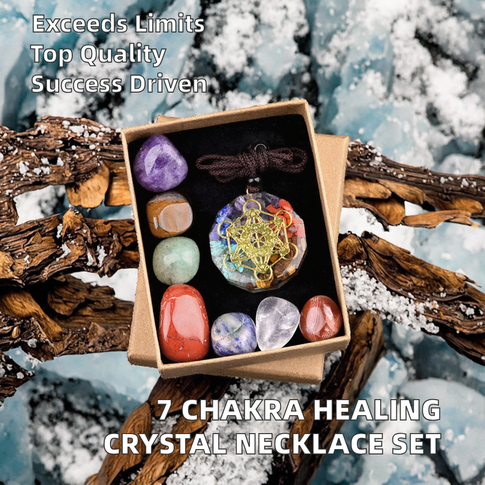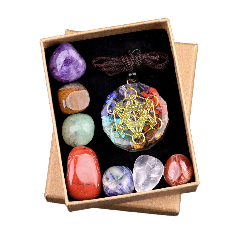Wholesale Eco-friendly Polished Engraved 7 Chakra Healing Stone Gift Box Natural Crystal Irregular Shape Healing Energy Necklace