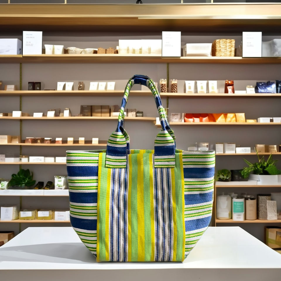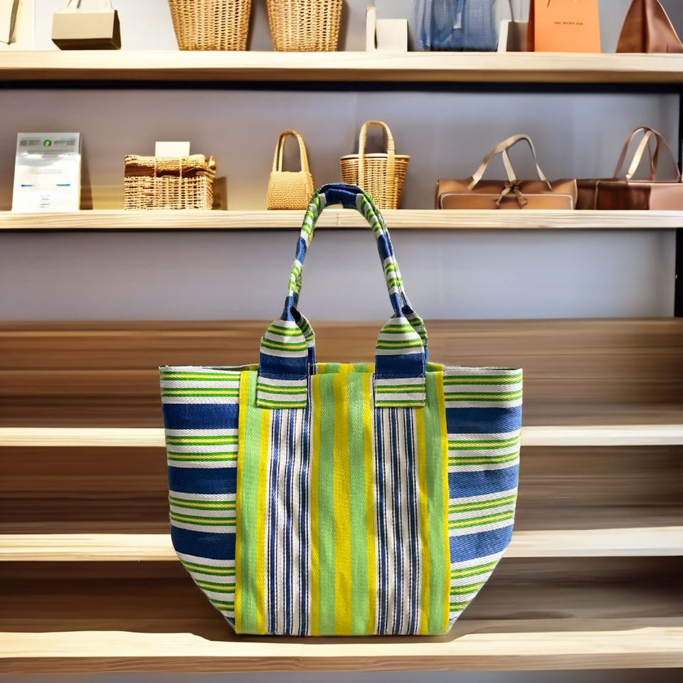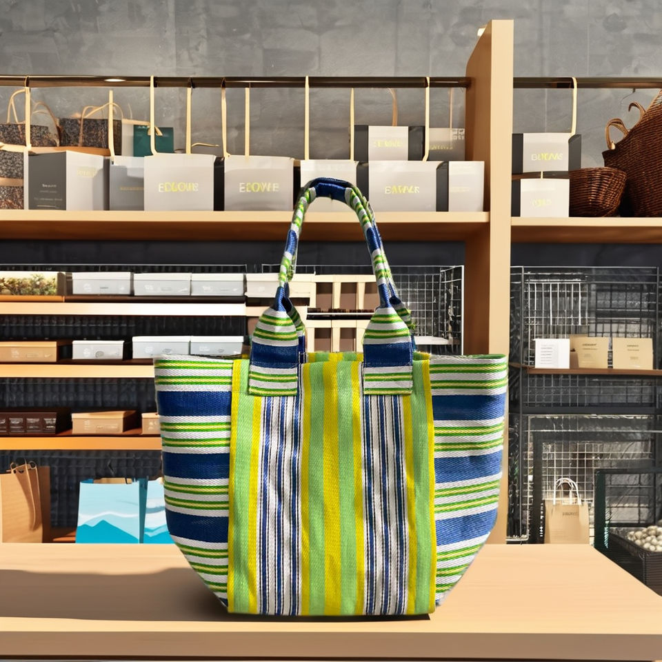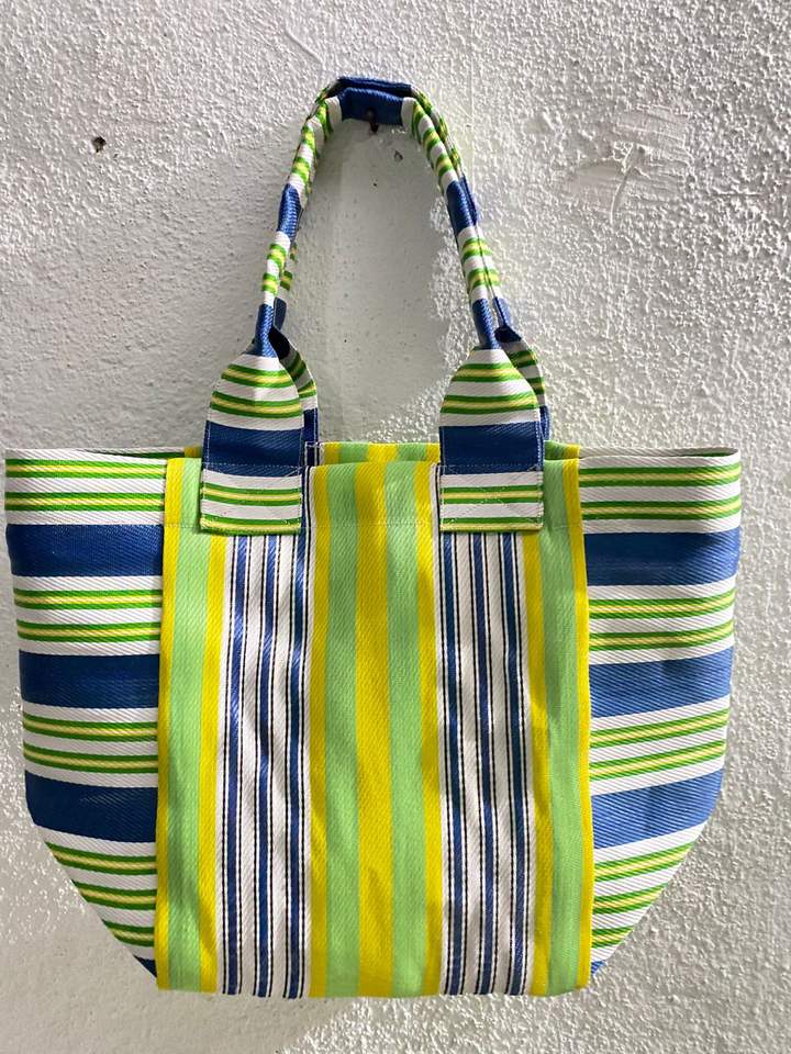 Wholesale Eco-friendly Recycled Nylon PP Woven Striped Plastic Handloom Market Beach Bags Reusable Sustainable Rope Zipper