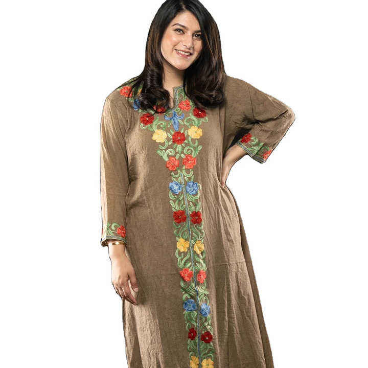 Wholesale Elegant Bohemian Embroidered Maxi Dress Plus Size 4XL Three-Quarter Sleeves & Natural Waistline Designed for Parties