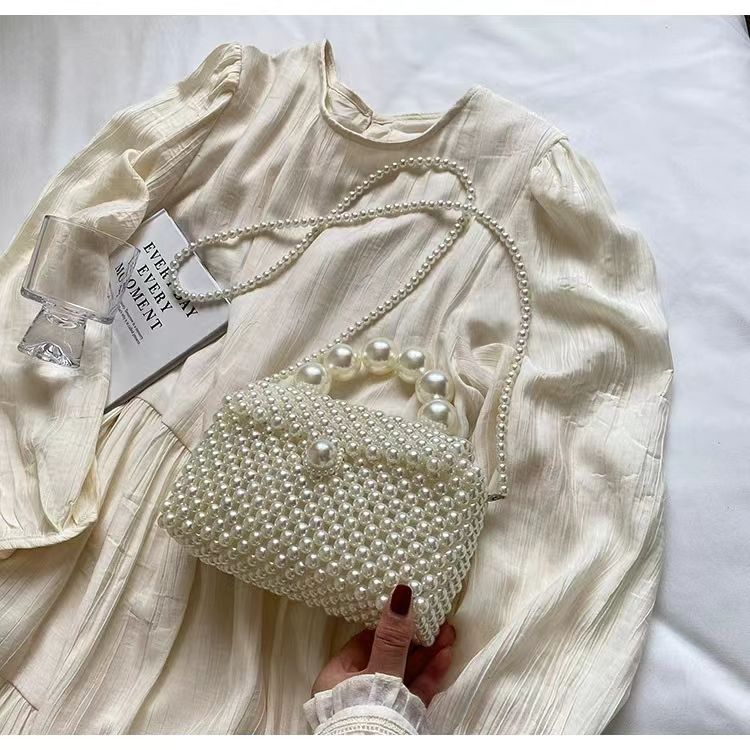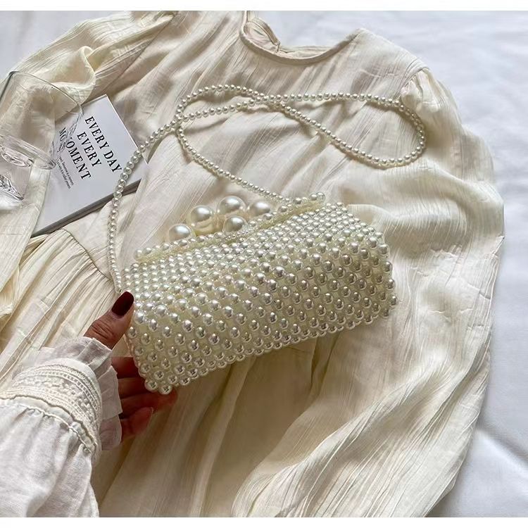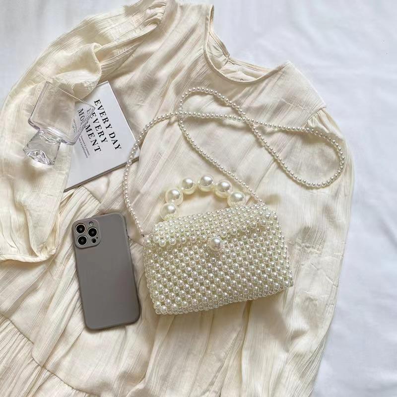 Wholesale Elegant Ladies Holiday Beach Hollow Out Handbags Fashion Weave Beaded Pearl Crossbody Bags