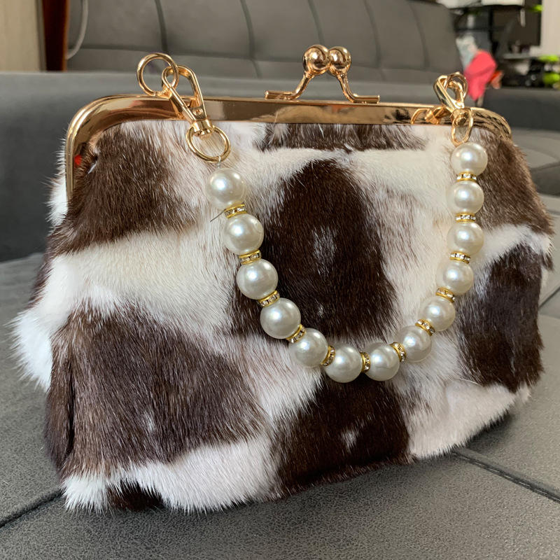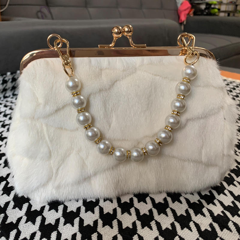 Wholesale Elegant Mink Fur Mini Handbag for Ladies Fashionable Portable Small Bag with Stylish Grass Mink Fur Style