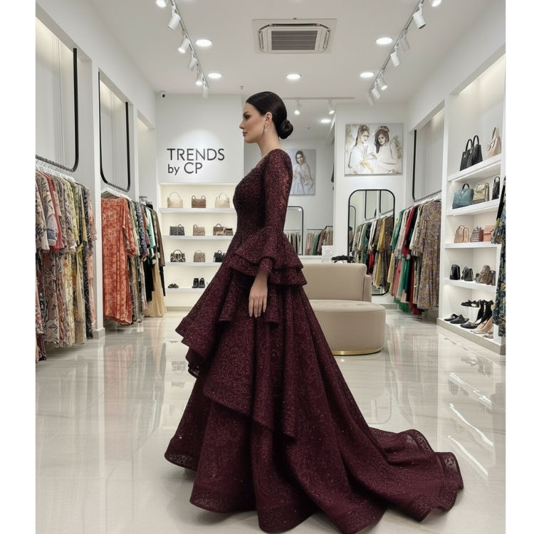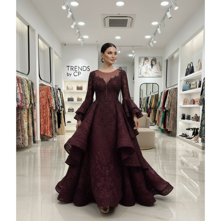 Embellishment:Beading, Angular mirror metallic trim, Sequined, Lace, Draped