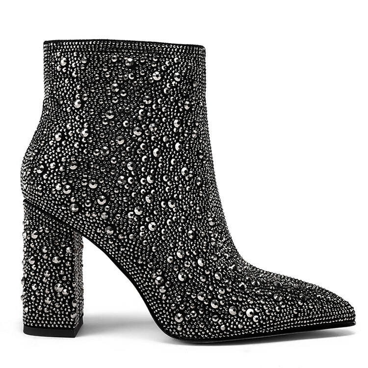 Wholesale Elegant Rhinestone Short Boots 9.5cm High Heel Women Shoes Fashion Ankle Boots for Lady high heels pumps women shoes