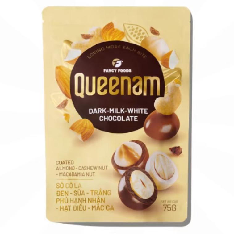 Wholesale Eleven Flavours Vietnam Dragee Chocolate Snacks Candy OEM Mix Chocolate Coated Almond Cashew Macadamia Nuts 75G