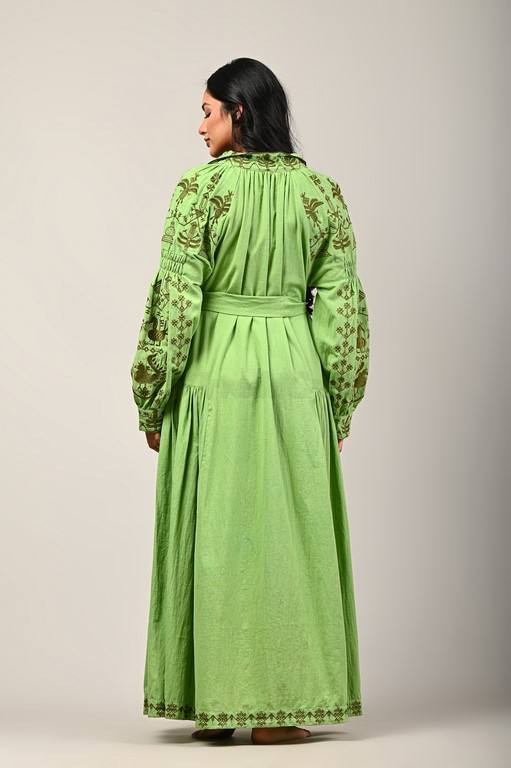 Wholesale Embroidered Long Ukrainian Dress Long Sleeves With Half Collar Two Pocket With Tassels Belt with Tassels